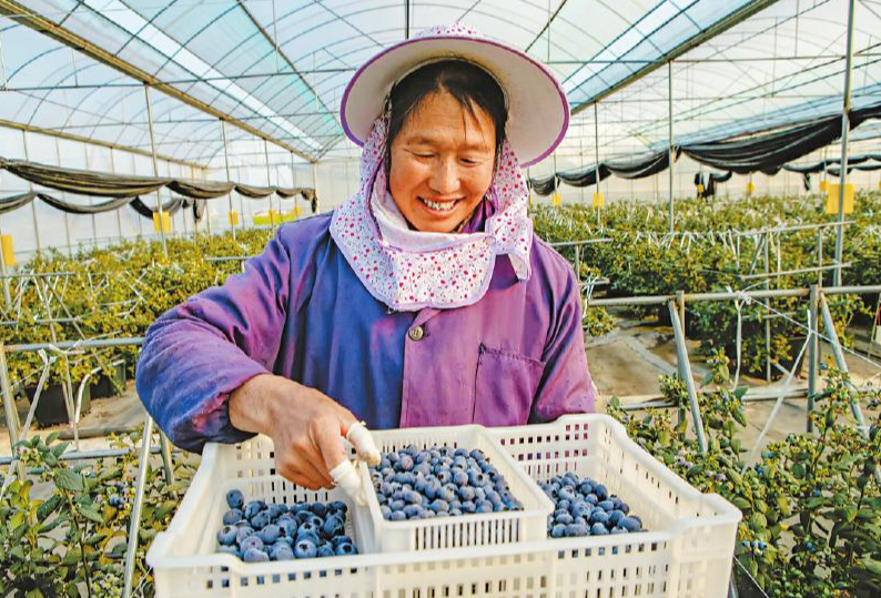 2月20日,凉山州西昌市佑君镇蓝莓种植基地,工人在采摘蓝莓。李结义 摄(C视觉)