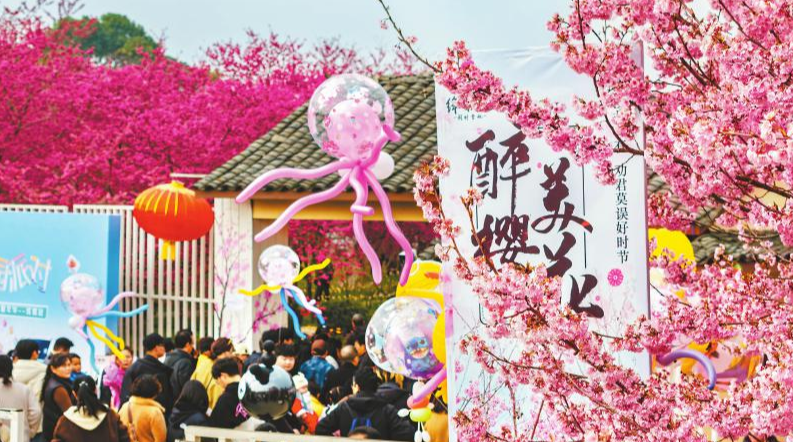 3月1日,成都市新都区绛樱院的樱花绚烂绽放,不少市民来此赏花游玩,赴一场春天的约会。 顾志平 摄(C视觉)