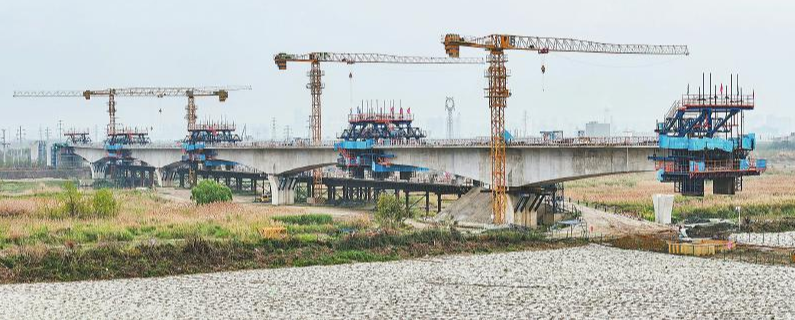 4月6日,建设中的成都市域铁路成德线(S11线)德阳段正在进行高架施工。 王福明 摄(C视觉)