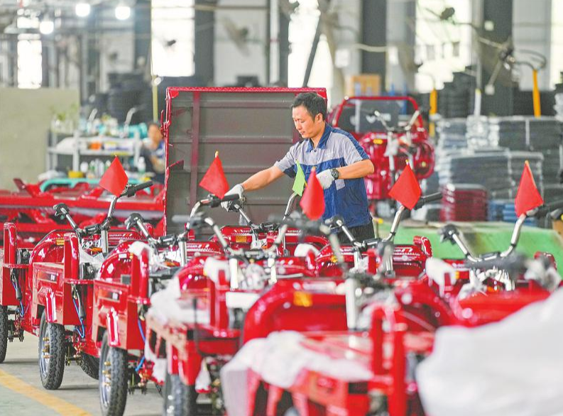 近日,记者在四川眉山天府新区双胜新能源车业有限责任公司看到,工人们正紧锣密鼓组装一批即将发往非洲、东南亚的电动三轮车。面对国际经贸环境波动与外部挑战,作为全国科技型中小企业、四川省专精特新企业,这家新能源三轮车企提前布局外贸市场,针对不同海外客户需求,提供“私人定制”研发设计车型。该企业预计今年电动三轮车外贸目标销量1万台。 新华社记者 王曦 摄影报道
