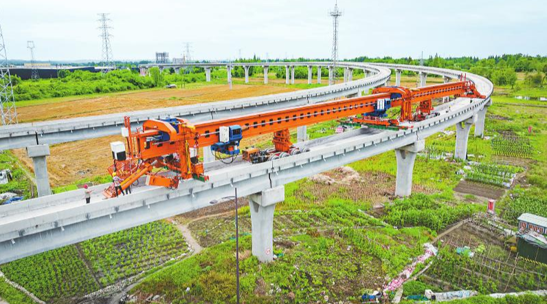 6月2日,在都江堰至四姑娘山山地轨道交通项目建设现场,施工人员按计划推进项目。都四项目起于都江堰高铁站,止于阿坝州小金县四姑娘山镇,线路全长123公里,是全国首条山地齿轨交通项目。都四山地轨道的先开段——都江堰至卧龙段计划于2026年建成通车。韦洪涛 摄(C视觉)