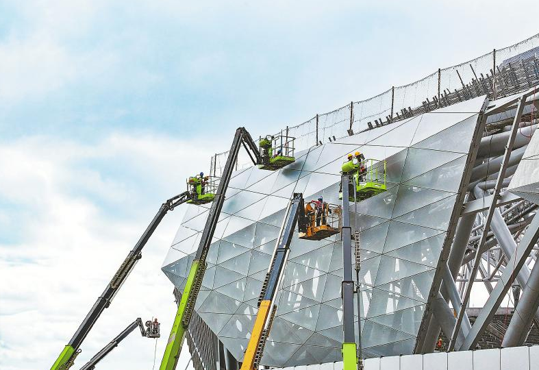 6月8日,在川渝广安共享体育基地项目奥体中心建设现场,建设者正进行高空作业。进入6月,广安市项目建设按下快进键,各施工现场呈现出一片热火朝天景象,力争实现时间过半、任务过半。 邱海鹰 摄(C视觉)