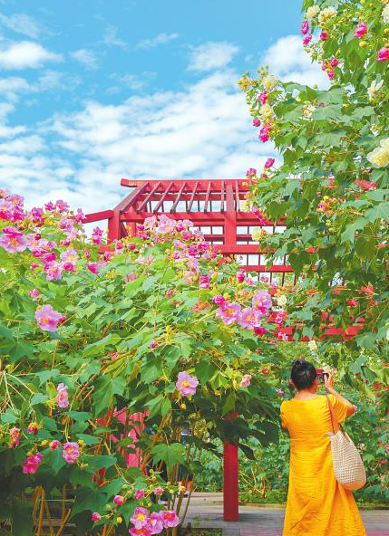 10月18日,成都植物园内游客在拍芙蓉花。李佳 摄(C视觉)