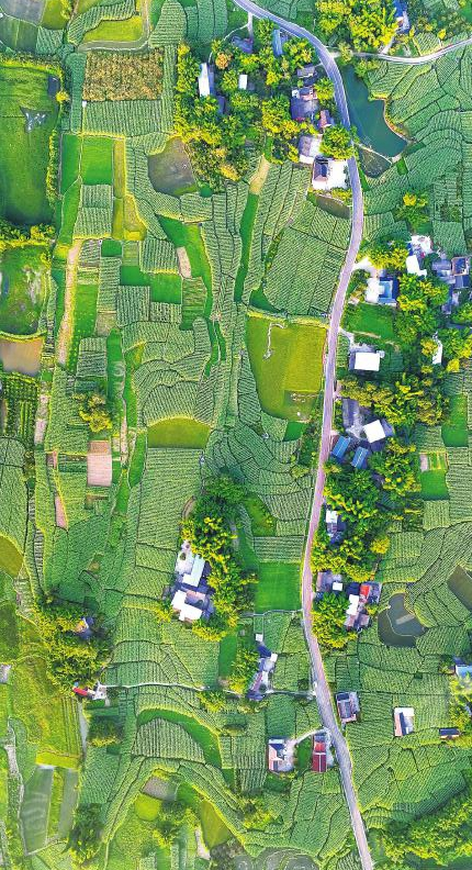 航拍江北镇甘蔗田。