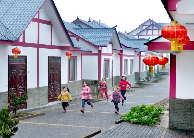 四川省广安市广安区兴平镇丁坝村,孩子们在易地扶贫搬迁安置点嬉戏玩乐