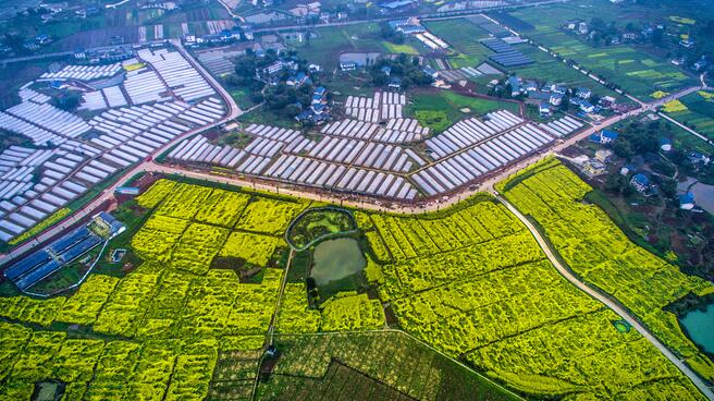 产村相融,四川省广安市前锋区观塘镇现代农业示范园一景