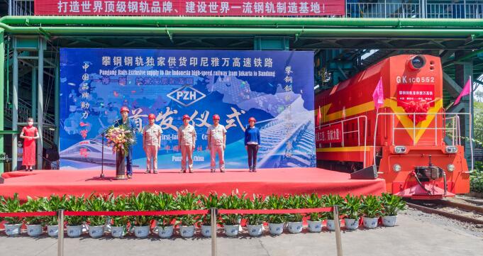 3月27日14时,首发仪式现场,一列火车满载着首批百米钢轨,缓缓驶出攀钢钒轨梁厂 王东 摄