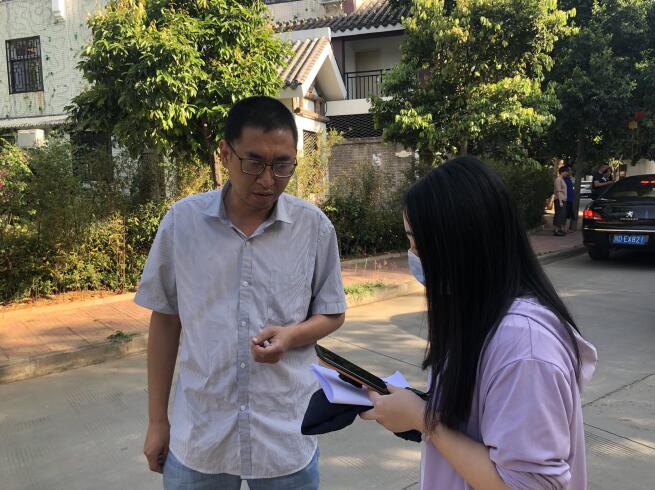 阿署达村委会主任鲍进芝介绍当地情况 潘兴扬 摄
