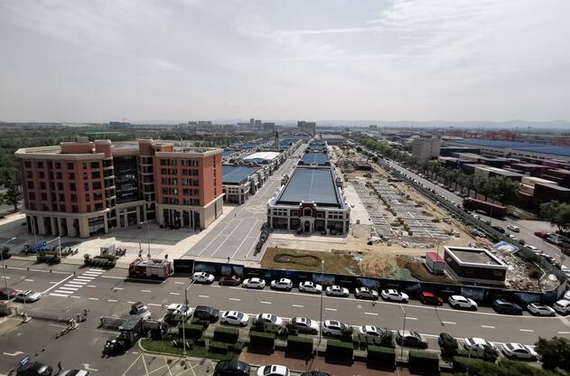 蓝天之下,道路笔直开阔,绿树成荫,成片的园区和产业城显示出勃勃生机,没有一丝枯燥的工业机械气息;色彩斑驳的集装箱依次地从铁轨上装卸,繁忙有序而不嘈杂……