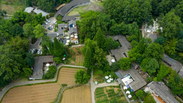 所谓林盘,指的是成都平原特有的生态系统形式。林盘集合了生产生活功能,拥有树林、田地、河湖等原生自然资源,传承了天府农耕文明与巴蜀民俗文化,被誉为“陆地绿岛”。