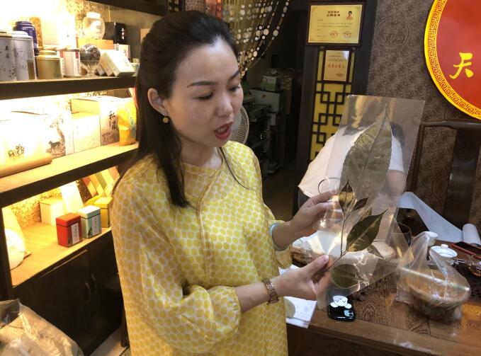 竹里牧茶农业发展有限公司负责人马艳向记者介绍枇杷茶树种 潘兴扬 摄