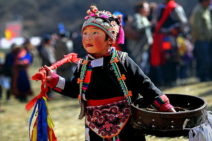 理县民俗活动表演中的尔玛小鼓手