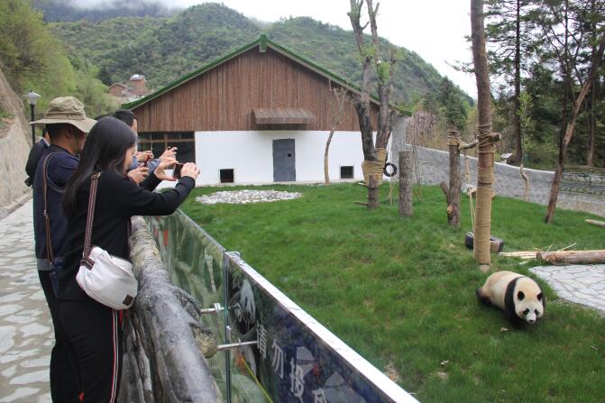 九寨沟县勿角甲勿海大熊猫保护研究园开园,憨态可掬的大熊猫吸引着嘉宾 卢锦根 摄