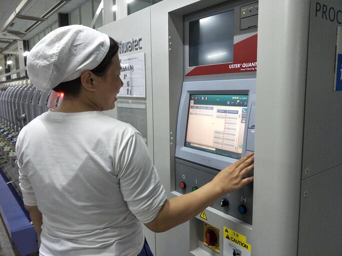 另一边,涡流纺车间的负责人蒲燕就是宜宾本地人,过去一直在嘉兴从事纺织工作,随着宜宾天之华开建,便被公司派回负责管理。回忆起这段经历,蒲燕感慨地说:“从没想过能在家门口做纺织工作,收入待遇也是一样好。”