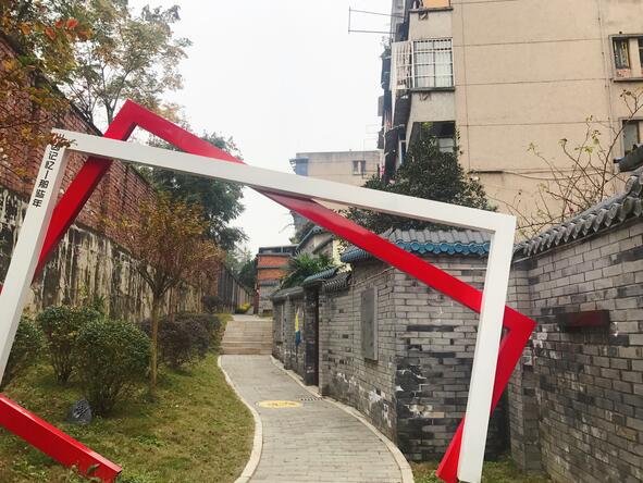 金秋时节,走进莲花社区,首先映入眼帘的是彰显原四川齿轮厂发展历程的灰瓦文化墙、被郁郁葱葱的植被包围着的红墙老式建筑和无处不在的工业老物件——一座充满工业怀旧风的主题社区尽收眼底。