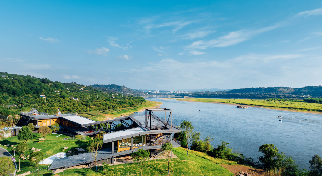 穹顶屋、荷叶屋、鸟巢屋和三角屋4种房型散落其间,树蛙部落以装配式建筑的方式降低了对自然的干扰,结合高低错落的江岸,打造出极致的江景视野。与此同时,天空牧场、房车营地、青山农圃等诸多业态不仅可以让游客体验暗夜精灵、微观世界、植物相框等自然探索活动,还可以感受酿酒、油纸伞等泸州特色传统文化。