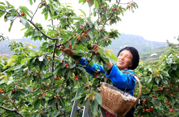 村民正在采摘甜樱桃
