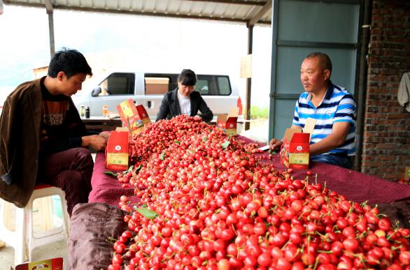 在甜樱桃的销售上,汶川县采取了政府搭台、引导果农“触网”,利用苏宁、京东等平台将汶川的甜樱桃销往全国各地,鼓励县域企业参与、搭建网络营销系统……慢慢地,甜樱桃打出了品牌。