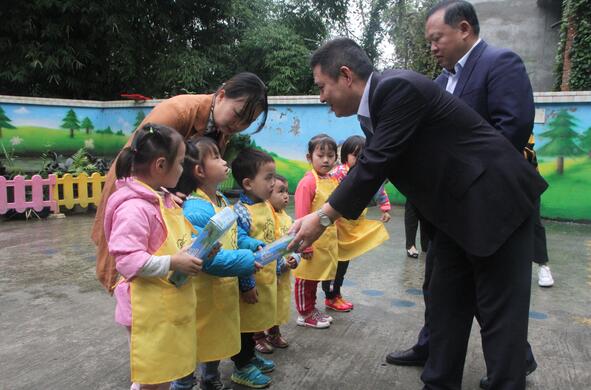 创意美术,开阔眼界。白鹿幼儿园是当地的一所幼儿园,全园共有四个班、71名小朋友,其中90%以上的小朋友都是留守儿童,有7名小朋友是建档立卡贫困户儿童。谭行长、甘书记为7名建档立卡贫困户儿童送上绘本等慰问品,为全园小朋友赠送文具,并特邀米罗美术教育的专业美术老师老师们为全校学生上了一堂生动的创意美术课,通过让小朋友们体验全新的授课形式,来开阔小朋友们的眼界,提高他们的动手能力,让他们在实践中感受快乐与温暖。