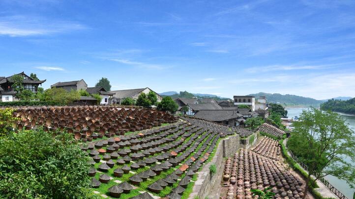 赤水河畔山坡上整齐排列着百余年的晒露酱缸