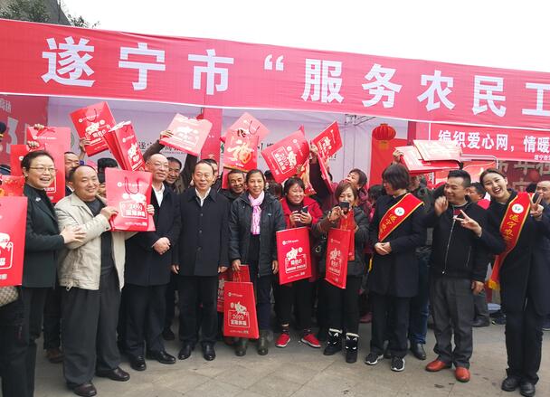 近年来,遂宁农商银行牢固树立“以人民为中心”的发展思想,着力向农民工提供贴身式金融服务和人性化关心关爱。该行根据省委省政府《加强农民工服务保障十六条措施》和市委市政府《加强农民工服务保障十八条措施》相关要求,主动联合当地党政开展形式多样的宣传慰问活动,把党的政策、关怀和温暖及金融知识送到了农民工朋友的心坎上。