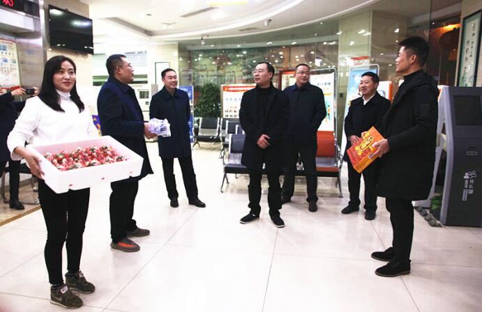 一年一度的年终决算工作如约而至,辛苦奋战在决算一线的网点员工一直是总行党委的牵挂,12月31日,党委书记罗勇,党委委员、纪委书记靳能东,党委委员、副行长陈宏,党委委员、副行长王静,党委委员、副行长胡小军一行带着总行党委的关怀,来到城区各网点看望和慰问一线员工,为他们送去水果等慰问品,并对来年“开门红”工作进行了指导。