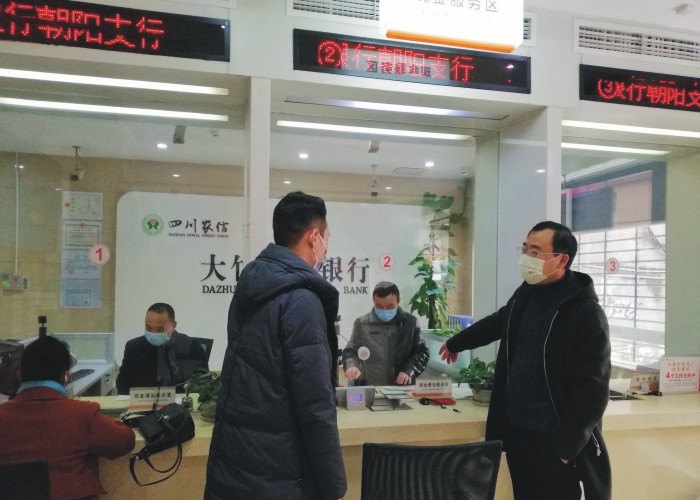 2月3日,复工返岗首日,大竹农商银行党委书记罗勇率领全体班子成员分赴基层各网点慰问一线员工,了解基层网点疫情防控情况,员工生活、身体状况以及“开门红”工作进度。