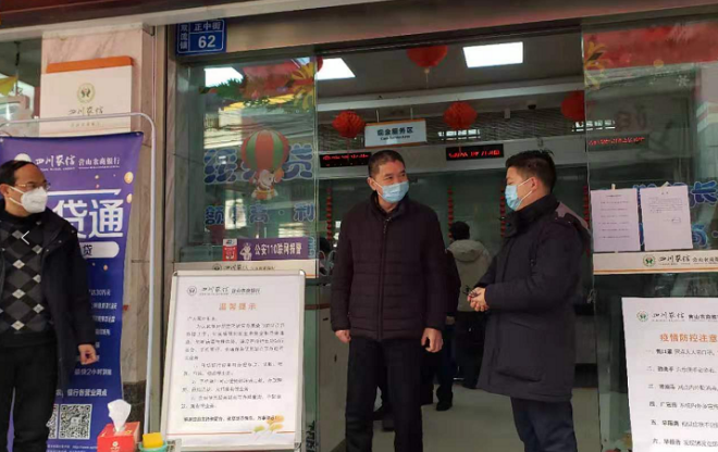 图为该行党委书记、董事长许智泉到营业网点检查督导疫情防控工作
