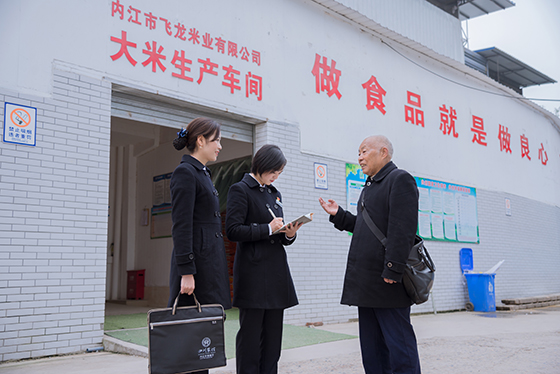 内江农商银行信贷员工在飞龙米业了解资金需求
