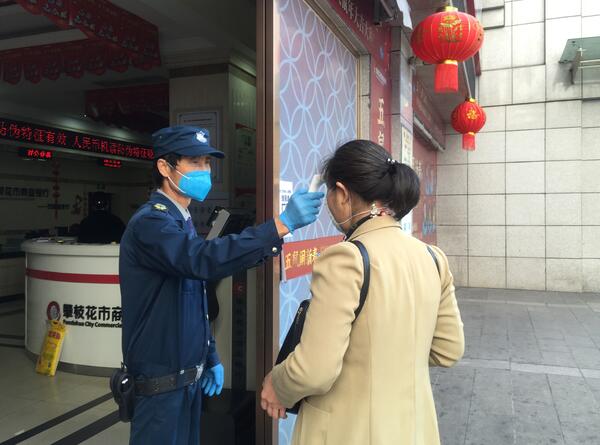 为前来办理业务的客户进行体温监测