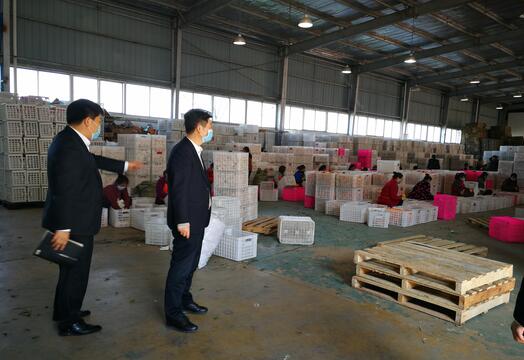 丹棱农商银行董事长郭长学在丹橙果业公司车间了解生产经营情况