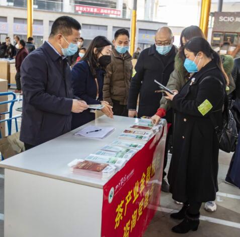 农商银行员工向茶农宣传介绍金融产品