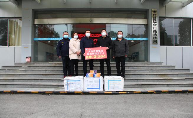 疫情牵动人心,一时间,口罩成为紧缺物资,为进一步保障竹乡一线环卫工人的口罩供应,2月20日,大竹农商银行向竹乡环卫工人捐赠1万只口罩,大竹县综合行政执法局代表一线环卫工人接受捐赠。