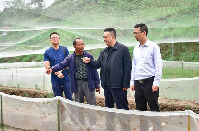 开江县农信联社理事长周依春(右二)在特色农业基地调研金融服务