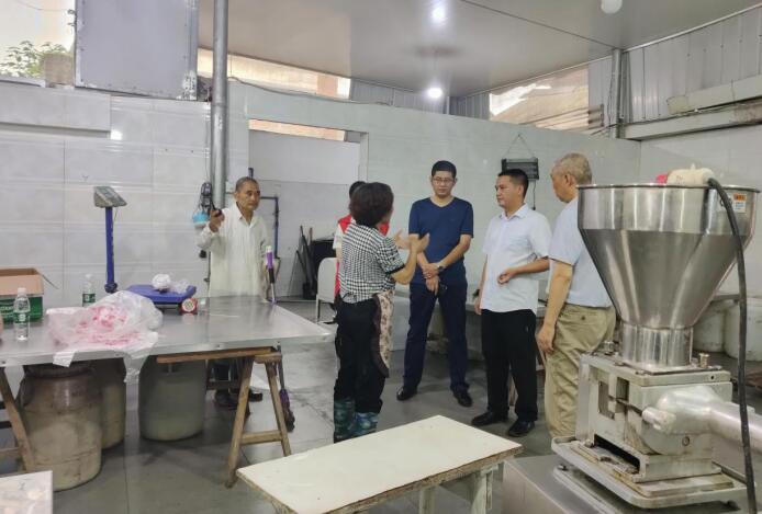 夹江农信联社员工正在了解马记月饼资金需求情况