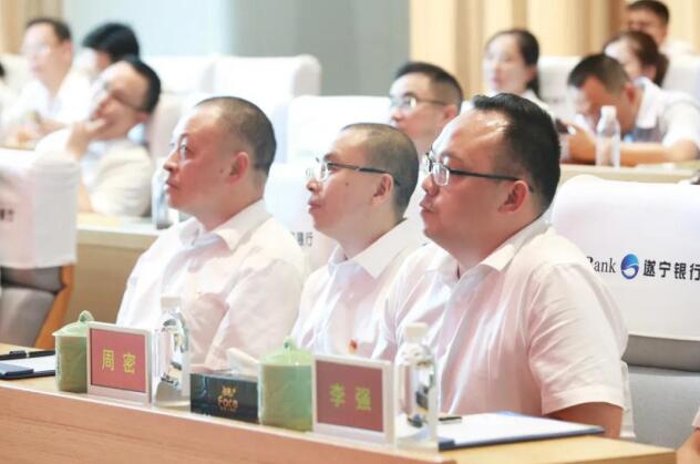 遂宁市纪委监委驻遂宁市国资委纪检监察组组长杨胜友、副组长鲜敏出席。遂宁银行党委委员、各党支部书记、总行各部门及各分支机构党员代表共100余人参加党课学习。党课由遂宁银行党委副书记、纪委书记、监事长王展新主持。
