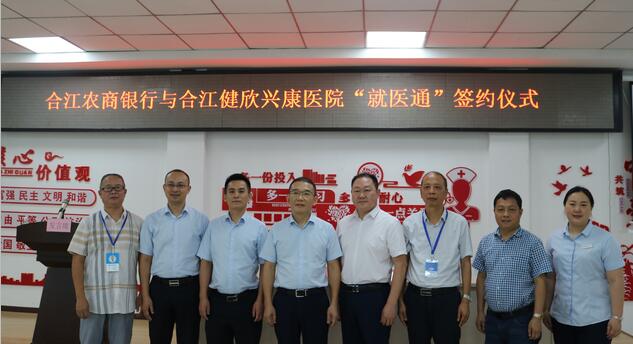 9月10日,合江农商银行与合江健欣兴康医院成功举办“就医通”签约仪式,开启了该行深化银医合作助力“智慧银行”建设新篇章。合江农商银行董事长刘枫、行长刘彬、副行长李兵以及合江健欣兴康医院副董事长王翔、院长杨炎忠列席了此次签约仪式。