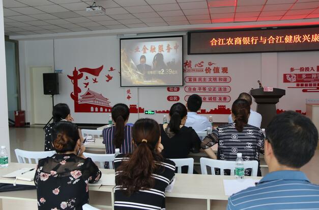 合江农商银行与合江县健欣兴康医院工作人员一起观看该行金融宣传视频