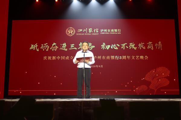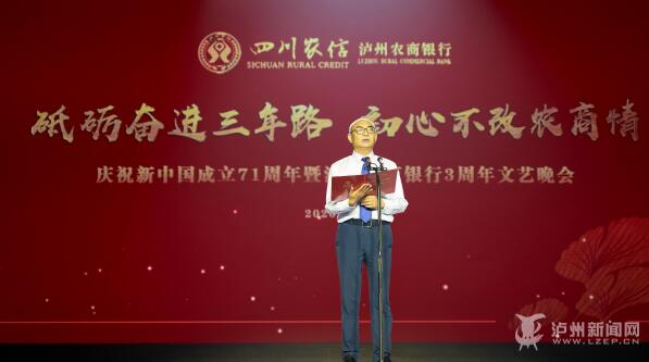 9月28日晚,庆祝新中国成立71周年暨泸州农商银行三周年庆文艺晚会在巨洋大剧院举行。