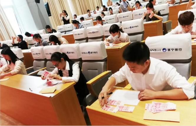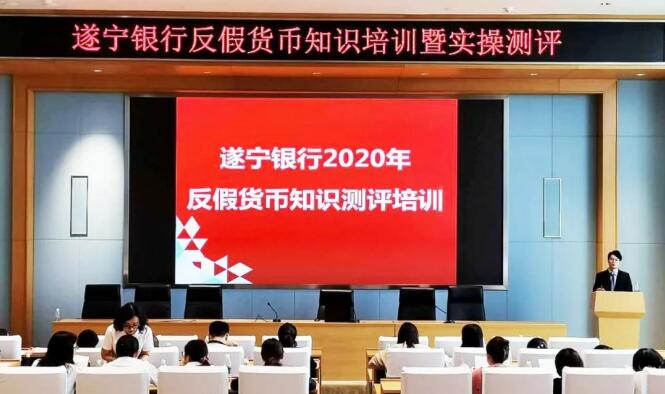 为贯彻落实人民银行《关于切实做好新形势下反假货币培训工作的通知》要求,全面提升员工识假、反假技能,有效防控假币误收误付风险,切实履行反假货币主体责任,9月28日至29日,遂宁银行组织全行现金从业人员,分别在总行学术报告厅,OCG国际金融中心宴会厅和射洪支行会议室,累计开展了三场“2020年反假货币知识培训暨实操测评”主题活动。遂宁地区32个营业机构及总行现金中心共190余人参加培训及测评。