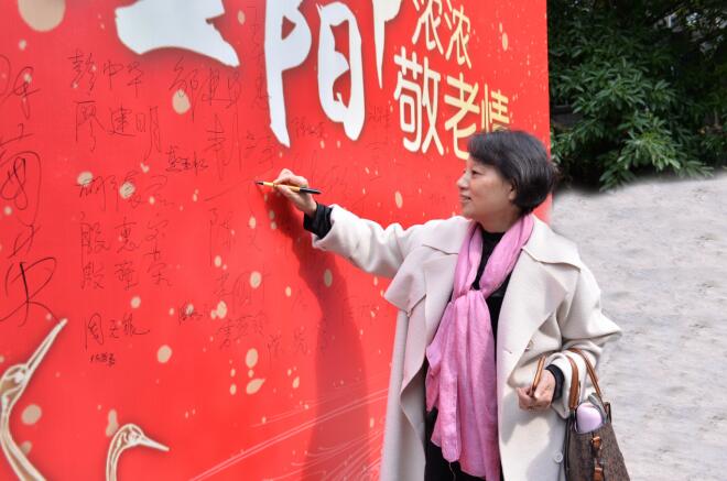 活动现场布置的喜庆祥和,老员工们陆续到来,在象征着益寿延年的签名墙上签名、合影。秋高气爽、天朗气清,和煦的阳光照在一张张灿烂的笑脸上,显得格外温馨。