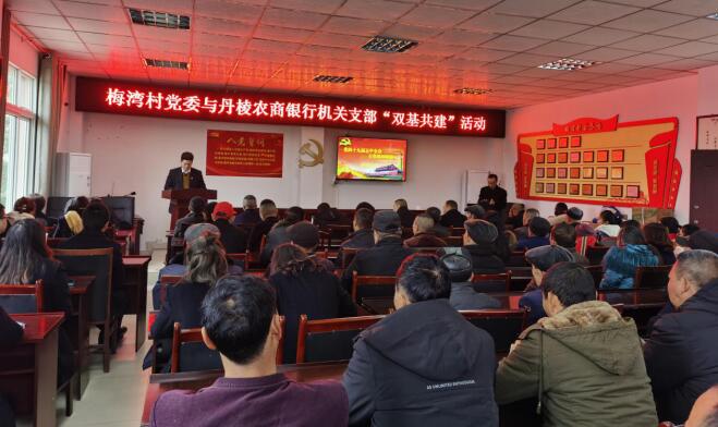 11月30日下午,天空下着濛濛的细雨,冬日的雨点打在人们的脸上,虽然透着丝丝的凉意,却侵扰不了大家激情滚烫的火热之心。此时在梅湾村村委会里,丹棱农商银行机关支部与梅湾村党委一场寓教寓乐的“双基共建”活动已拉开了帷幕。参加活动的有梅湾村及丹棱农商银行机关100多名党员(含入党积极分子)及梅湾村20名受表彰的基层贡献者。
