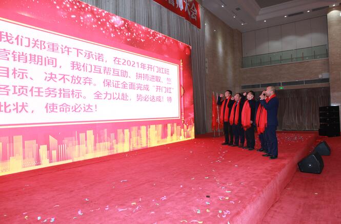 庄严宣誓,声势如虹。会议最后,党委书记成金华带领全体干部员工庄严宣誓,以饱满热情的呐喊,铿锵有力的誓言,彰显凝聚出资中农信员工誓夺2021年开门红全面胜利的必胜信心!