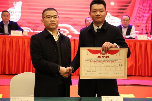 会上,总行纪委书记、监事长许晓渝带领与会人员诵读员工誓词,党委委员、副行长蒲昆带领与会人员进行集体宣誓。信贷管理部、渠道部、财务会计部、人力资源部就“开门红”目标任务及绩效考核等相关工作进行了解读。营业部、各小微中心负责人、各中心支行负责人进行了表态发言;总行与营业部、各小微中心、中心支行负责人在主席台前分别签订《2021“开门红”军令状》。总行党委书记张树林做动员讲话,提出了具体要求。