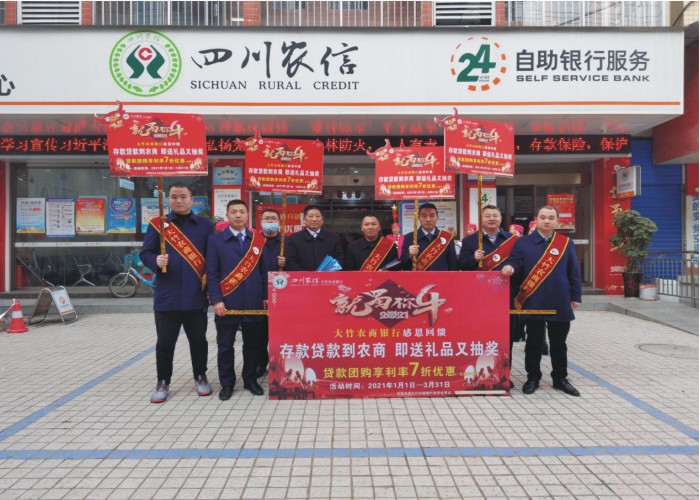 1月13日,大竹农商银行庙坝一级支行举行了“就蜀你牛,赢战2021”开门红宣传活动,打响了2021年“开门红营销战”的“第一枪。