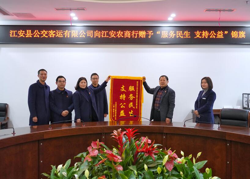 江安公交公司向江安农商银行赠送锦旗