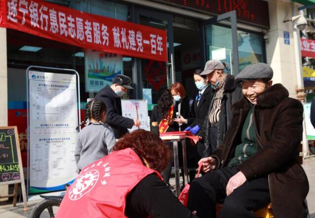 这是发生在遂宁银行德胜路支行门前的一幕。为了让更多需要帮助的群众得到关爱,共同度过上一个温暖祥和的春节,1月29日—2月8日,遂宁银行总行营业部组织志愿者相继在栖霞路、德胜路、南津路等多地,开展了5场惠民志愿服务活动。活动中,共为社区居民和过往群众免费书写春联200余副、免费理发80余次、免费擦鞋60余双、免费磨刀300余把,并赠送内装对联、福字、红包、窗花等年货的大礼包3500余套,深受广大群众好评。