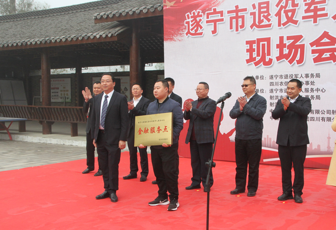 3月23日上午,遂宁市退役军人服务中心“一体化”服务暨共建共享退役军人“服务超市”现场会在射洪市沱牌镇龙泉村隆重召开,四川农信(遂宁)作为唯一共建的金融机构参会。