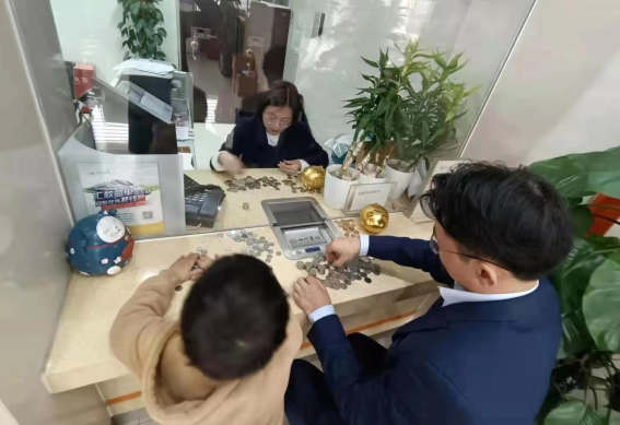 我行始终秉承客户存款自愿、取款自由的原则。网点负责人接待并答复“四川农信四川人民自己的银行”,加之“有专门的零钞破损钞币兑换窗口,因此你们存硬币也是我们银行的工作职责”。该储户零钱较多,并且清点零钱会占用柜面较长时间,为全方位考虑网点对其他客户的服务质量和效率,提高清分识别硬币的效率,增强客户存款的体验度。网点负责人安排后台员工和客户经理一起帮忙清分硬币。