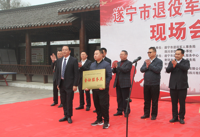 3月23日,遂宁市退役军人服务中心“一体化”暨共建共享退役军人“服务超市”现场会在射洪市沱牌镇龙泉村隆重召开,四川农信(遂宁)作为唯一共建的金融机构参会。